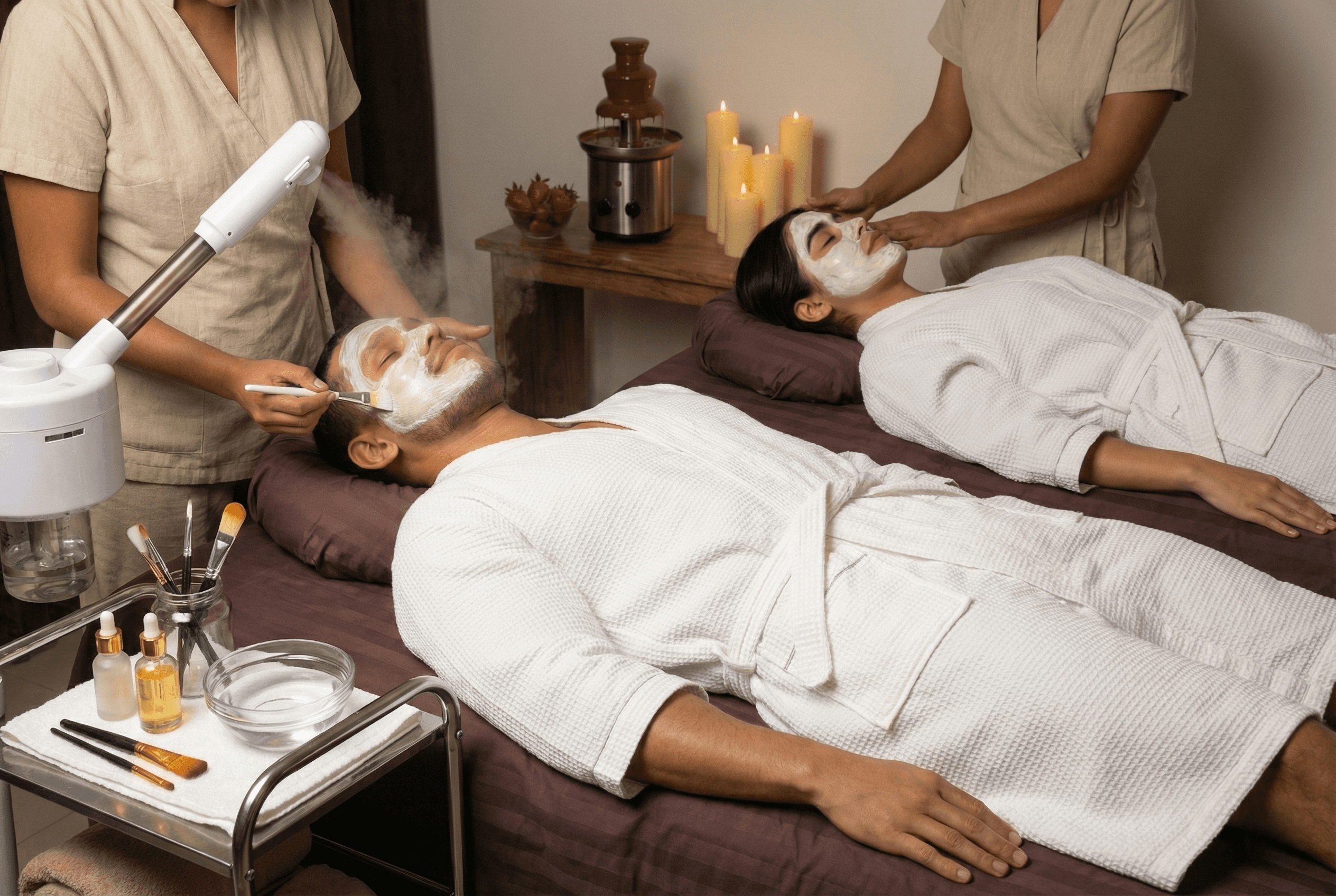 Sumérjanse en una experiencia sensorial envolvente y dulce. El cacao, conocido por estimular las endorfinas de la felicidad, nutre e hidrata profundamente la piel mientras disfrutan de un masaje relajante sincronizado. Es el tratamiento perfecto para celebrar el amor, elevando el bienestar con un aroma delicioso y propiedades antioxidantes para ambos.